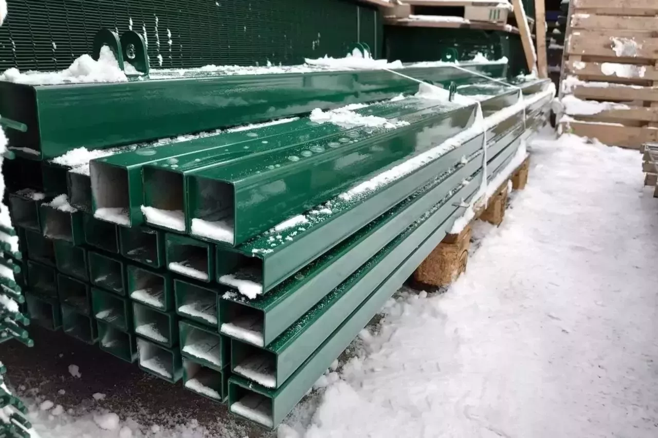 Столбы под 3Д забор данного типа отличаются высокой прочностью и многолетним сроком службы. Профильная труба сечения 100х100 мм способна выдерживать значительные механические и ветровые нагрузки, сохраняя при этом целостность всей конструкции.